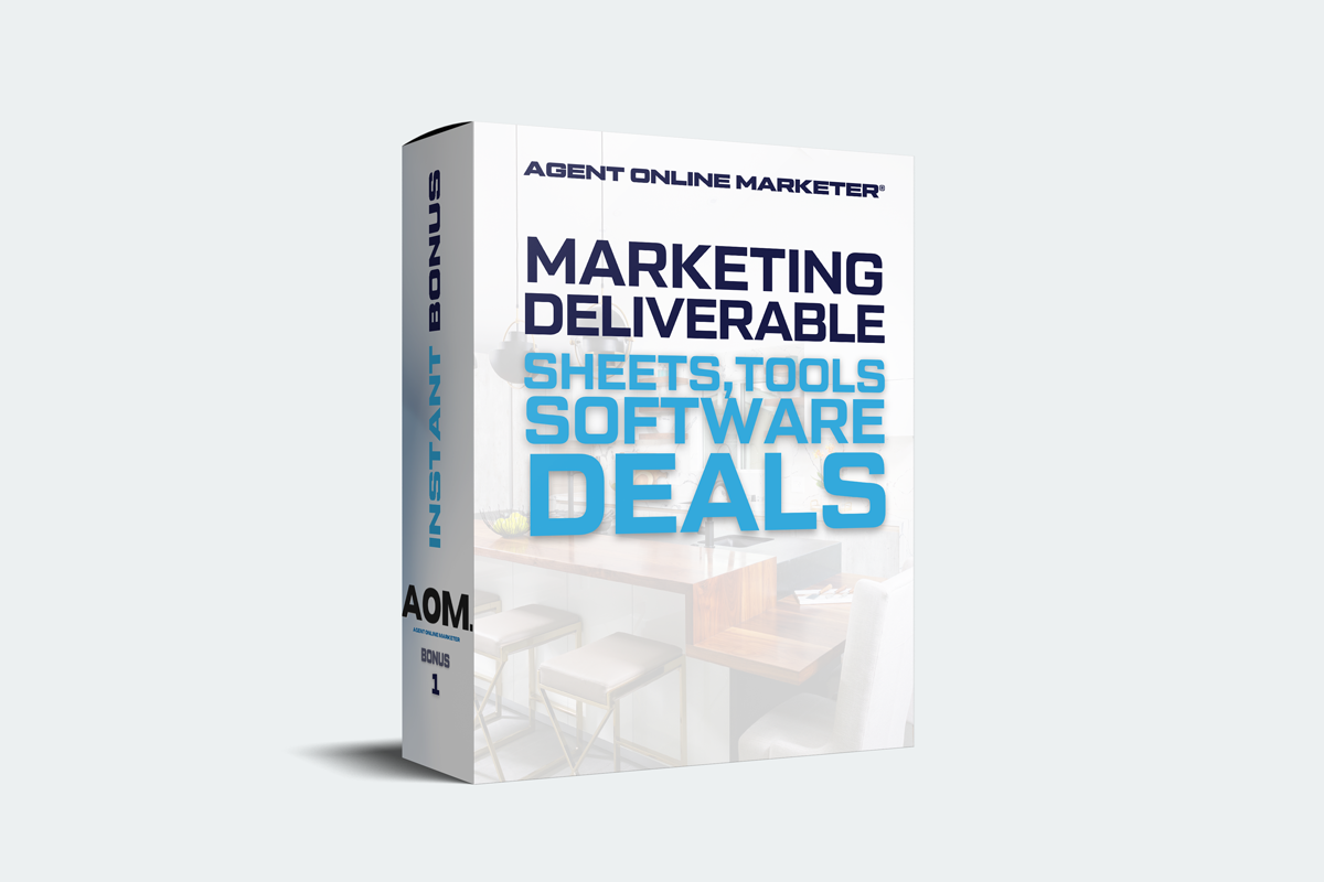Agent Online Marketer® is the ultimate professional certificate for any agent who wants to quickly unlock their inner top producer without wasting months of costly trial and error to figure it out on their own. Right now, get lifetime access for 1997 (Your Modern Agent Toolkit™ Ships for free while supplies last)